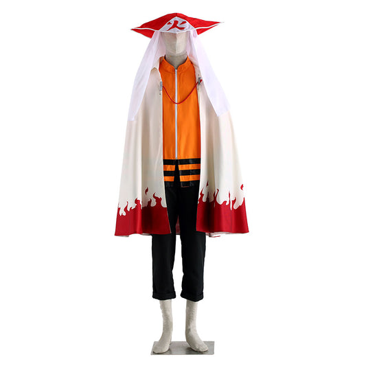 Anime Naruto Shippuden 7th Hokage Cosplay Costume Cloak with Hat Men and Kids Halloween