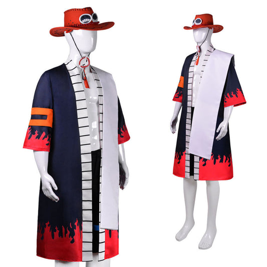 One Piece Fire Fist Ace Cosplay Costume full Outfit with Hat for Men Halloween