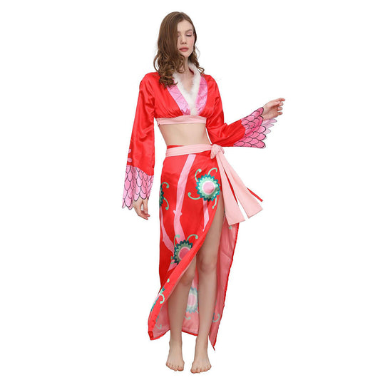 One Piece Boa Hancock Cosplay Costume 2PCS Red Dress with Earrings