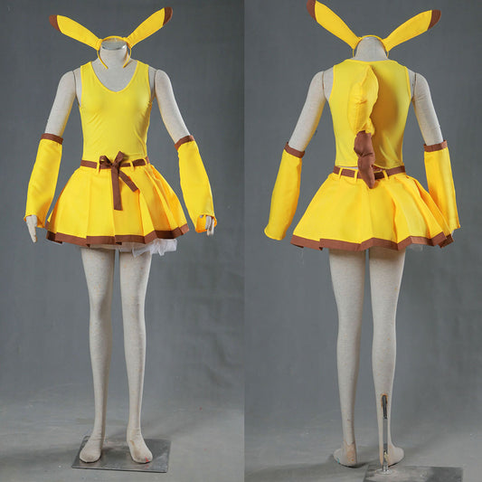 Anime Pokemon Costume Pikachu Cosplay full outfit with Accessories for Women and Kids