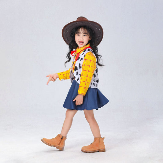 Toy Story Costume Woody Cosplay Full Outfit with Hat for Girls Halloween