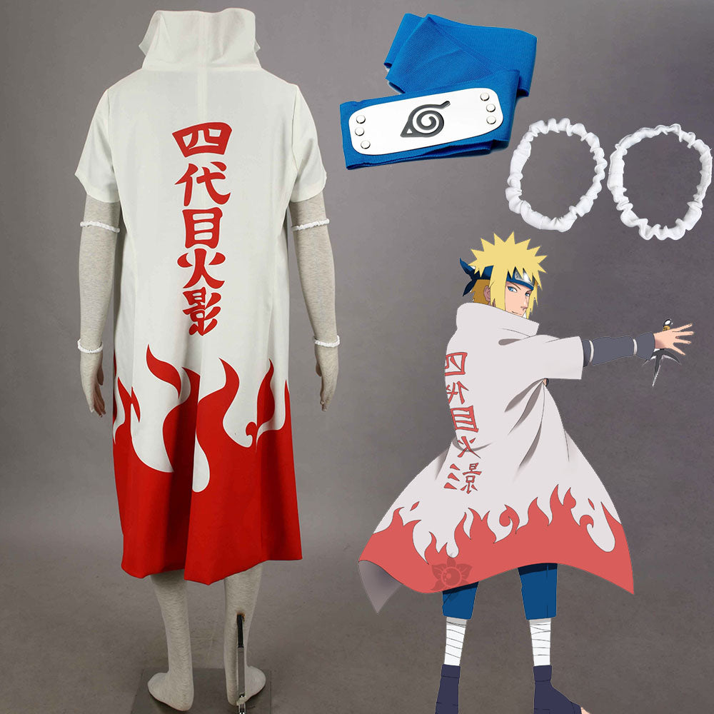 Anime Naruto Shippuden Costume 4th Hokage Minato Cosplay Cloak with Headband Men Kids Halloween