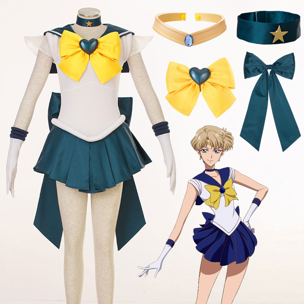 Halloween Anime Sailor Moon Costume Tenou Haruka Sailor Uranus Fighting Cosplay Full Outfit